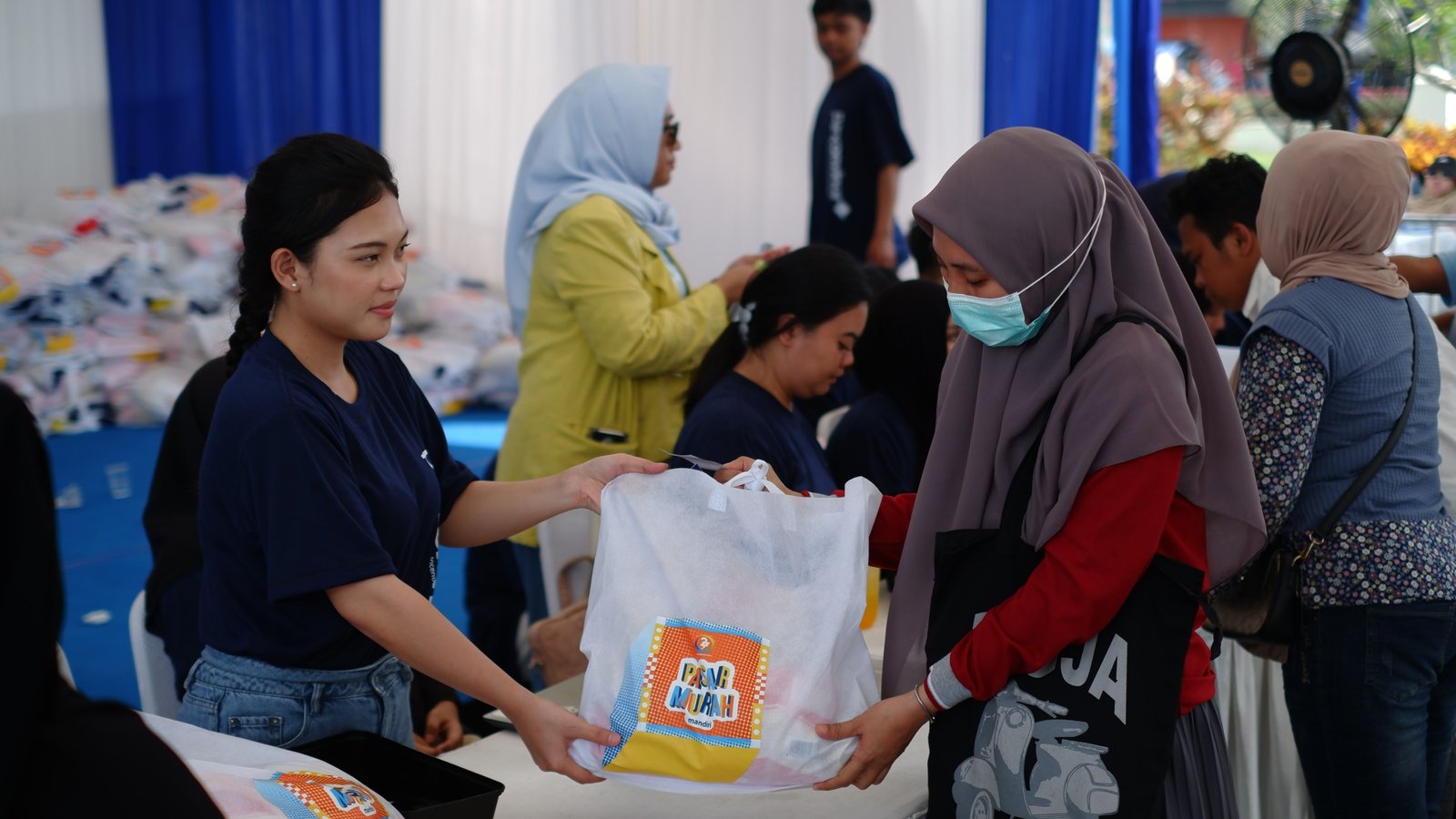 Dalam kegiatan ini, Bank Mandiri Region X menyediakan 5.000 paket sembako yang bisa ditebus seharga Rp27.000 — simbol usia Bank Mandiri — oleh masyarakat sekitar.