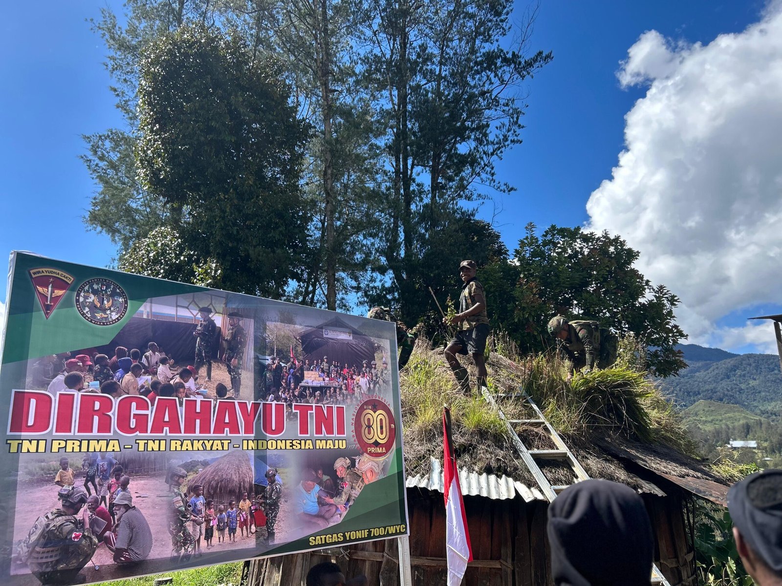 Mereka memilih memperingati Hari Ulang Tahun TNI ke-80 dengan cara lain: memperbaiki Honai milik Pendeta Raja Murib di Kampung Nipuralome.