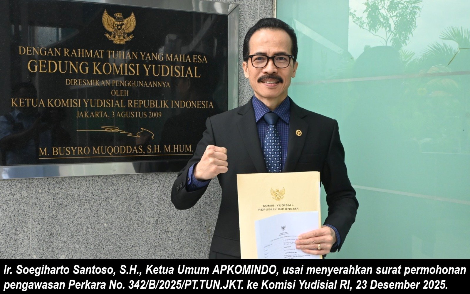 Mediapesan | Jakarta – Ketua Umum Dewan Pimpinan Pusat Asosiasi Pengusaha Komputer Indonesia (APKOMINDO), Soegiharto Santoso, mengajukan permohonan pengawasan khusus atas pemeriksaan perkara banding di Pengadilan Tinggi Tata Usaha Negara (PT TUN) Jakarta.