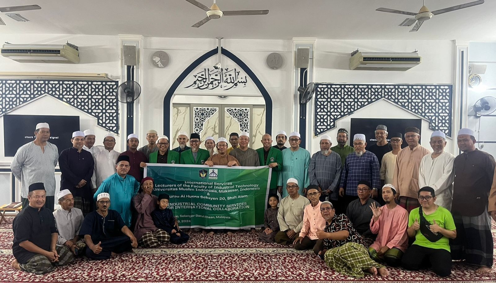 Kolaborasi lintas negara untuk memperkuat industri halal. Dosen UMI Makassar menyerahkan cendera mata kepada pengurus Surau Al-Husna, Shah Alam, sebagai simbol persahabatan dan komitmen bersama dalam edukasi proses produksi halal. (Ist.)