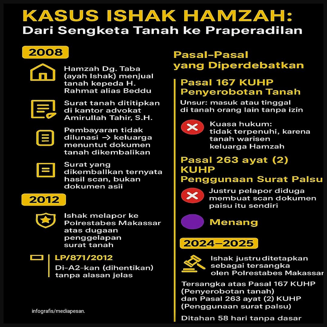 Makassar – Putusan praperadilan Nomor 29/Pid/2025/PN Makassar menjadi penanda babak baru dalam perjalanan hukum panjang yang menjerat Ishak Hamzah, warga Makassar yang sempat mendekam selama 58 hari di tahanan Polrestabes Makassar.