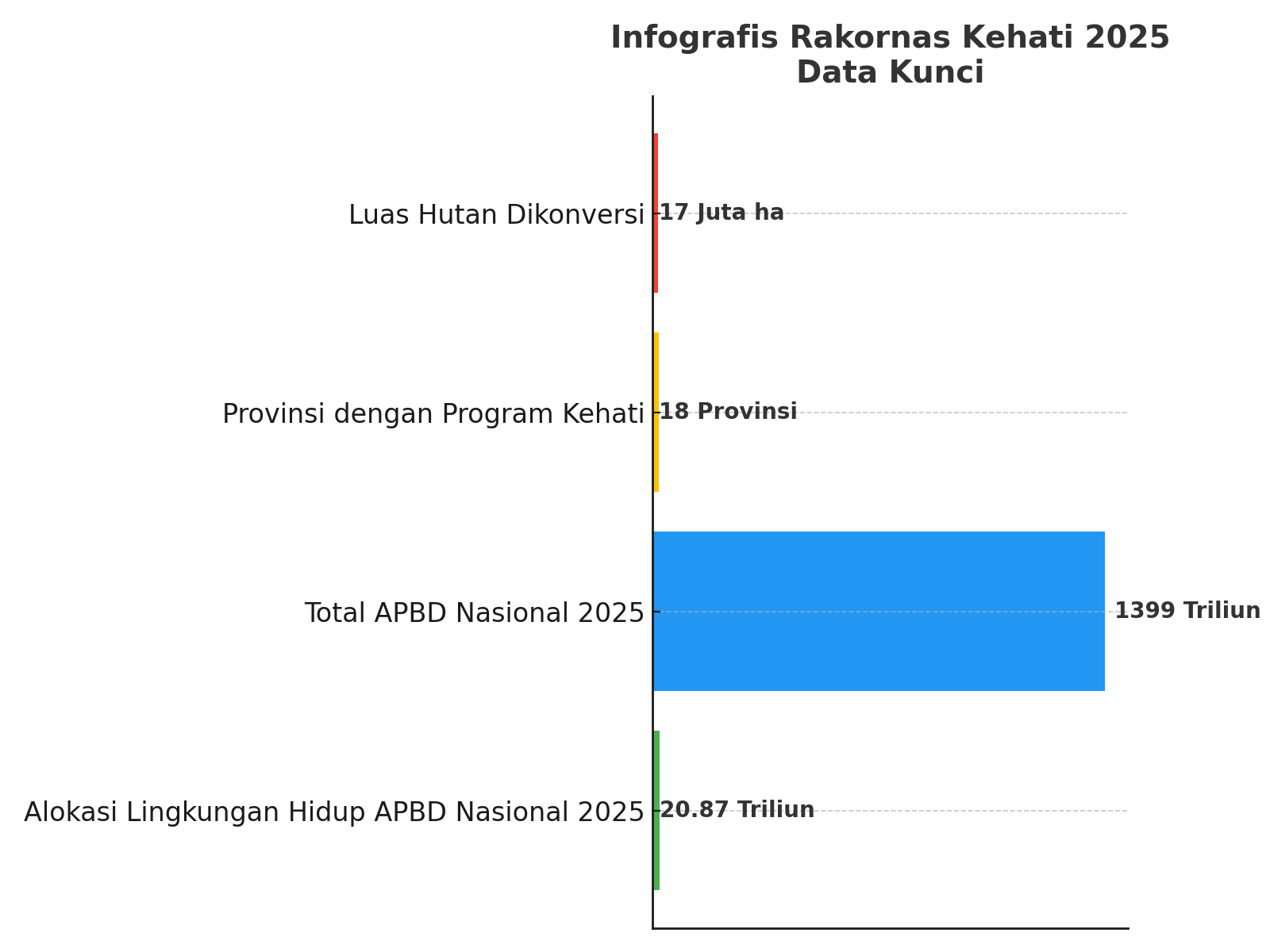 Laporan Rakornas mencatat lebih dari 17 juta hektare hutan telah dikonversi, sebagian besar untuk perkebunan kelapa sawit.