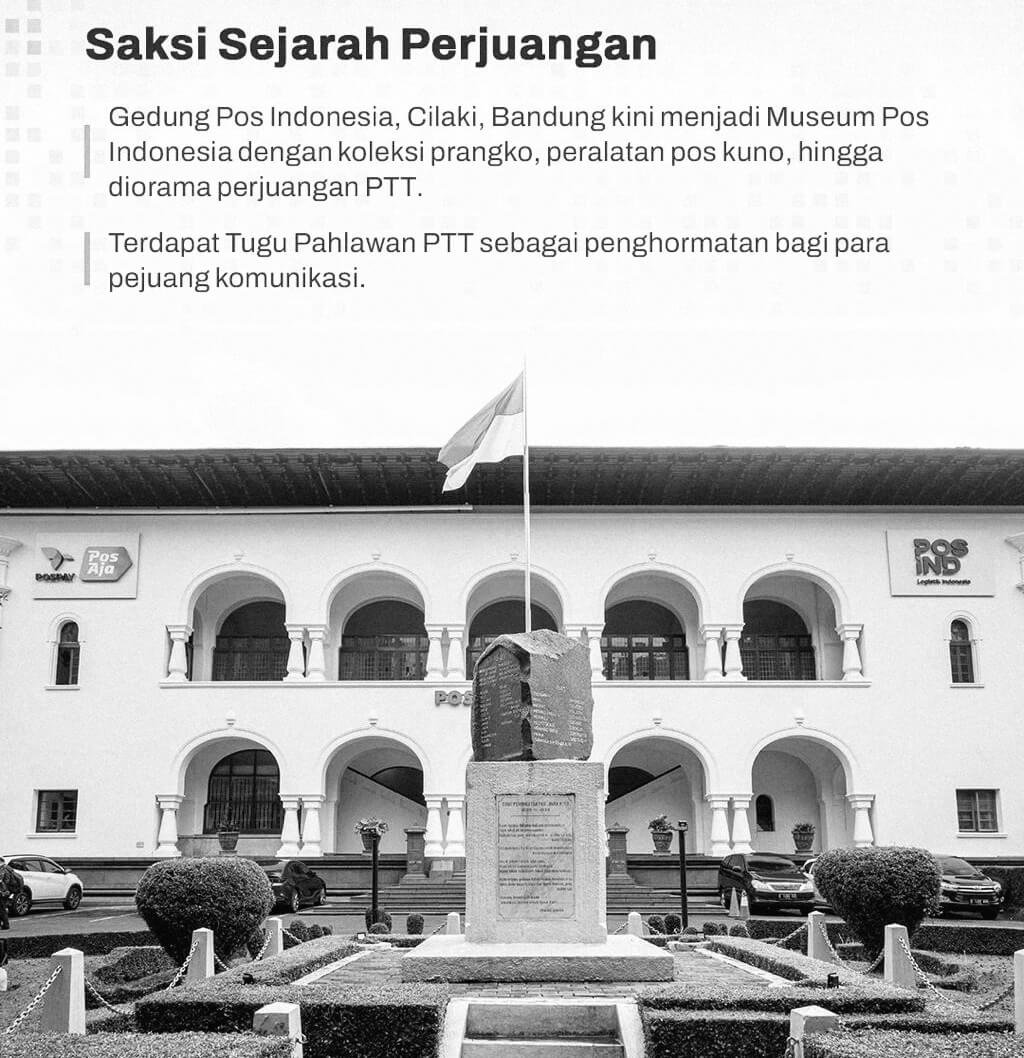 Gedung Pos Indonesia, Cilaki, Bandung Jawa Barat yang menjadi simbol perjuangan bangsa dalam menguasai sendi infrastruktur Komunikasi pasca-Proklamasi. (komdigi/ho/mp)