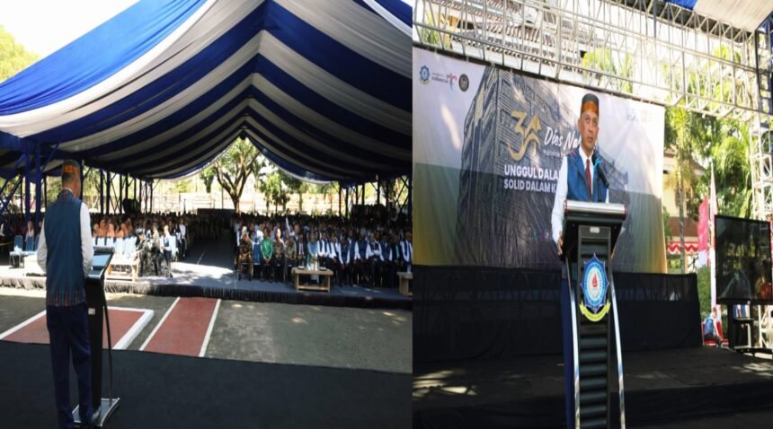 Ia menegaskan, tema tahun ini “Unggul dalam Prestasi, Solid dalam Kebersamaan” menjadi pengingat untuk terus meningkatkan kualitas akademik, memperkuat daya saing internasional, dan menjaga kekompakan di lingkungan kampus.