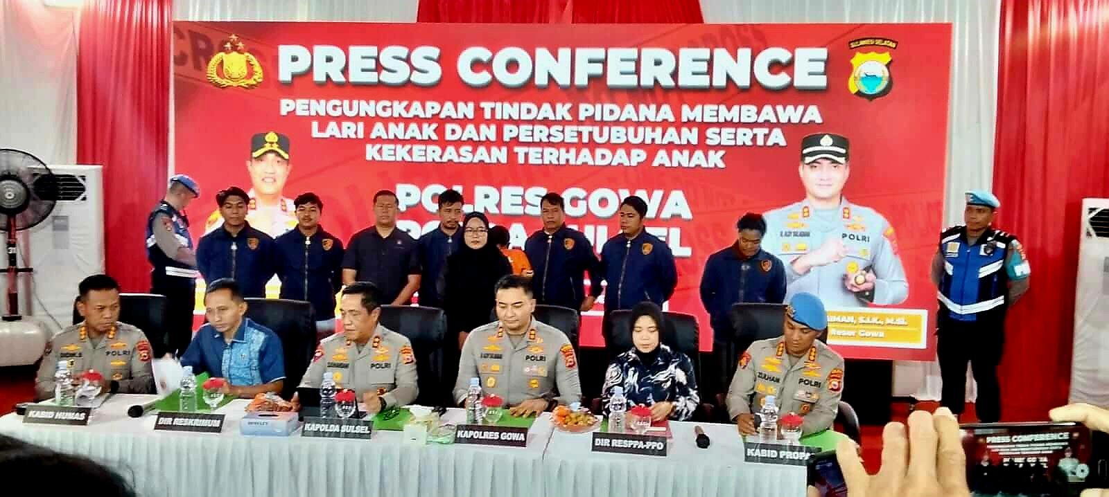 Dalam rilis itu, Kapolda membeberkan keberhasilan jajaran Polres Gowa melumpuhkan SFA, terduga predator anak kambuhan yang mencabuli bocah 10 tahun.